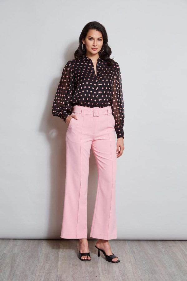 Springs “IT” pant is a chic update to the wide leg pant. Designed with a high-rise silhouette, front zip closure and a chic self-covered buckle, this pant will quickly become a staple in your wardrobe.