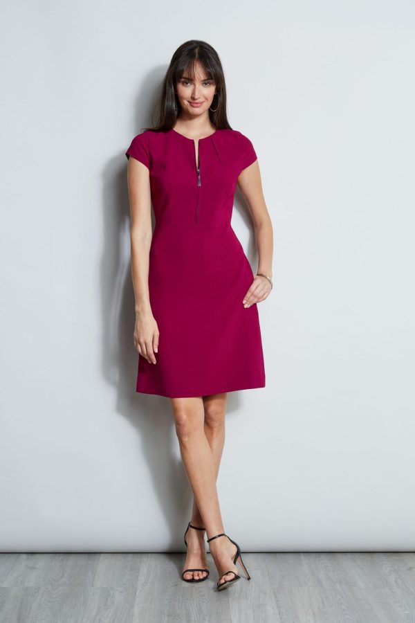 Elie Tahari Chain Zip Dart Dress Boysenberry | Online Women Short Sleeve Dresses