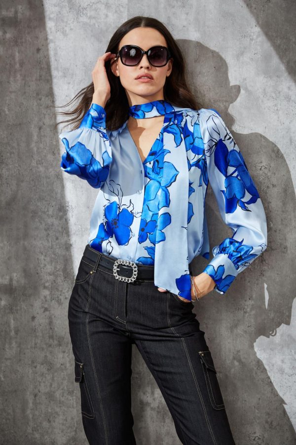 - Silk Satin Floral Printed Shirt With Removable Neck Tie