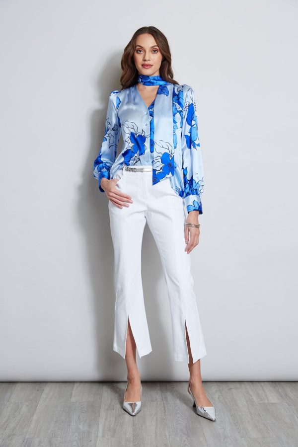 A chic removable neck tie and softly gathered sleeves lend a feminine twist to this season’s must have shirt. Crafted in luxe silk satin, our Chelsea Floral print is vibrant & sophisticated. Pair it with denim or white for the perfect Spring look.