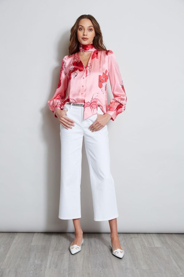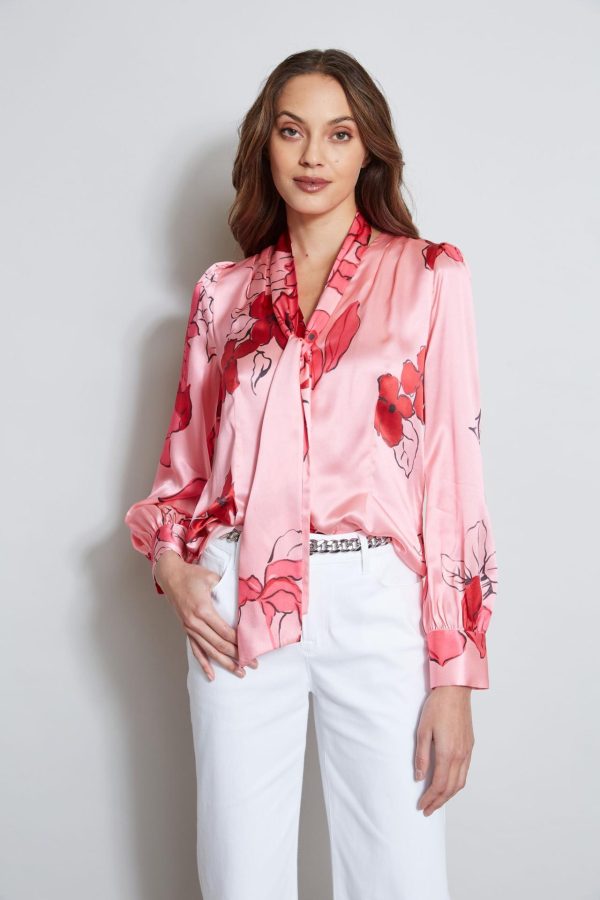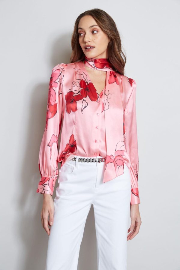 A chic removable neck tie and softly gathered sleeves lend a feminine twist to this season’s must have shirt. Crafted in luxe silk satin, our Chelsea Floral print is vibrant & sophisticated. Pair it with denim or white for the perfect Spring look.