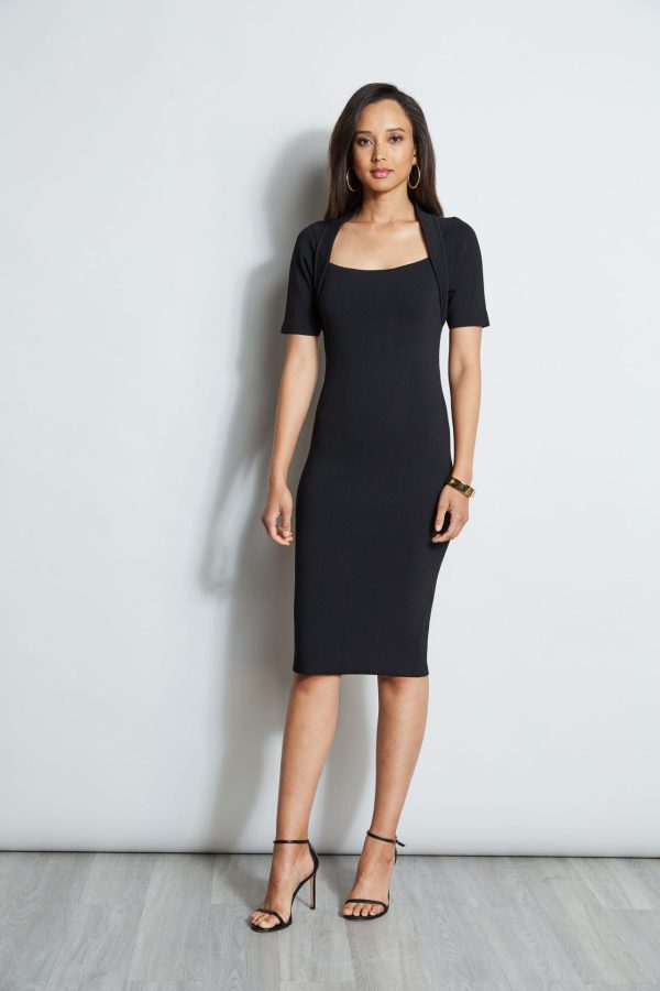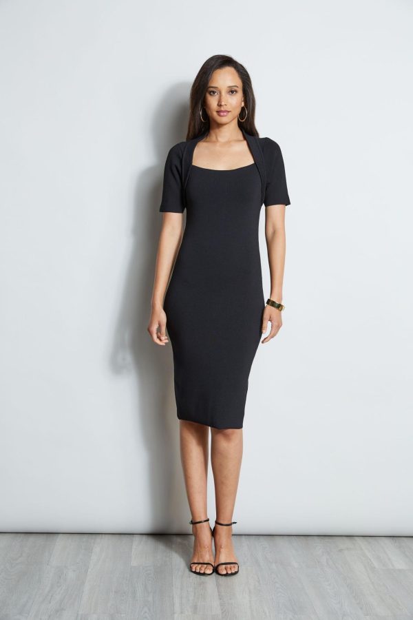 Elie Tahari Contour Sweater Dress Black | Online Women Midi Dresses