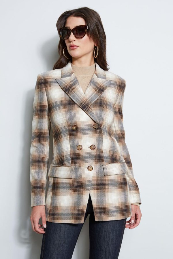 Elie Tahari Double Breasted Ombre Plaid Blazer Multi | Online Women Jackets & Blazers