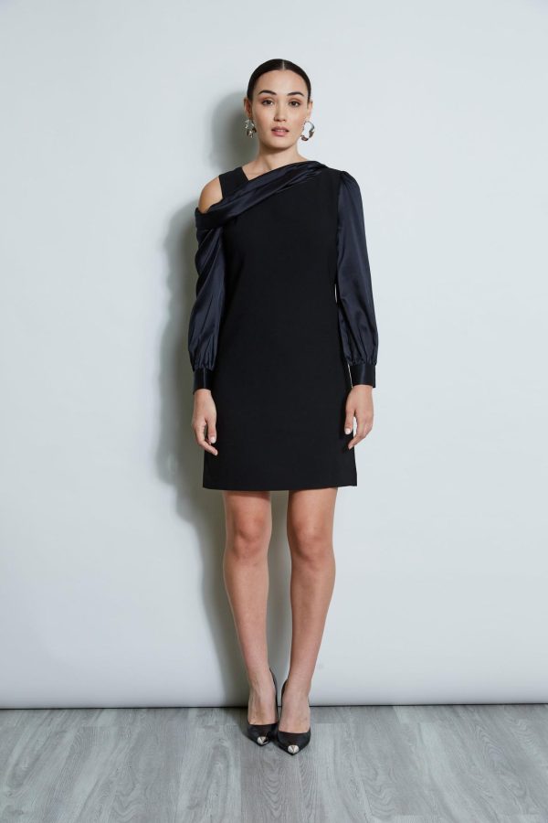 - Satin One Shoulder Dress with Satin Off Shoulder Detailing