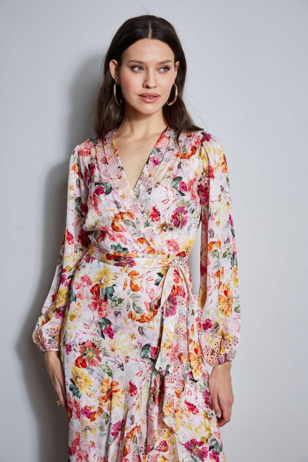 We’re obsessed with our femme Wonderland Floral Print. Luxe Silk georgette was perfect for our ultra-chic wrap dress. The sophisticated print, embroidery & easy silhouette lend a modern vibe to this on-trend dress that will take you from day into dinner.