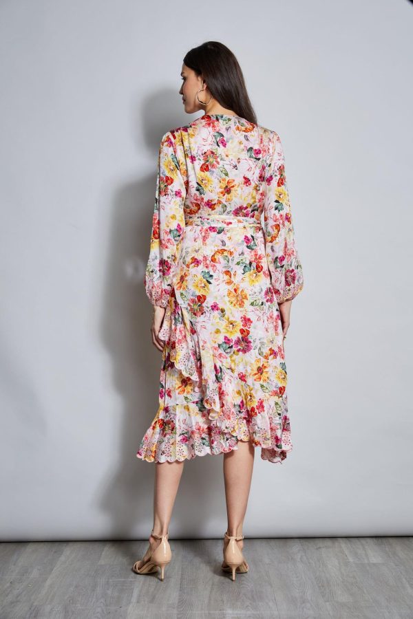 Elie Tahari Embroidered Floral Wrap Dress Wonderland Print | Online Women Long Sleeve Dresses