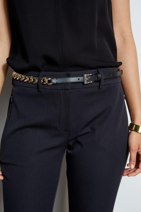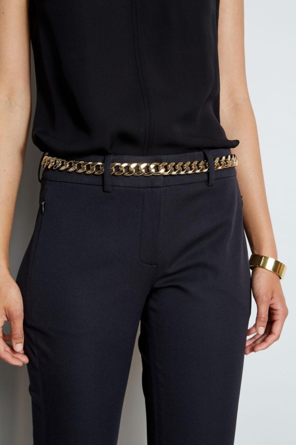 The “IT” accessory for Spring. Add an effortless glam factor to any look with our gold chain link belt. We love it worn with a suit or dress – style meets function with the must-have belt of the season. Wear it buckled in the back for an all chain look, or wear it buckled in the front highlighting its modern leather tab closure and silver buckle.