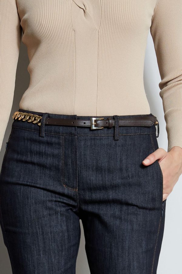The “IT” accessory for Spring. Add an effortless glam factor to any look with our gold chain link belt. We love it worn with a suit or dress – style meets function with the must-have belt of the season. Wear it buckled in the back for an all chain look, or wear it buckled in the front highlighting its modern leather tab closure and silver buckle.
