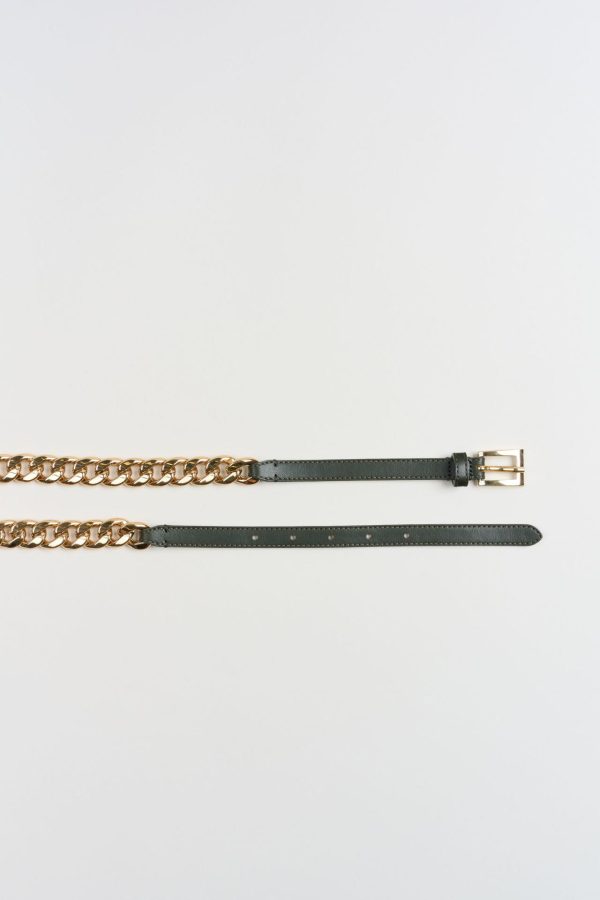 - Gold Brass Chain Leather Belt