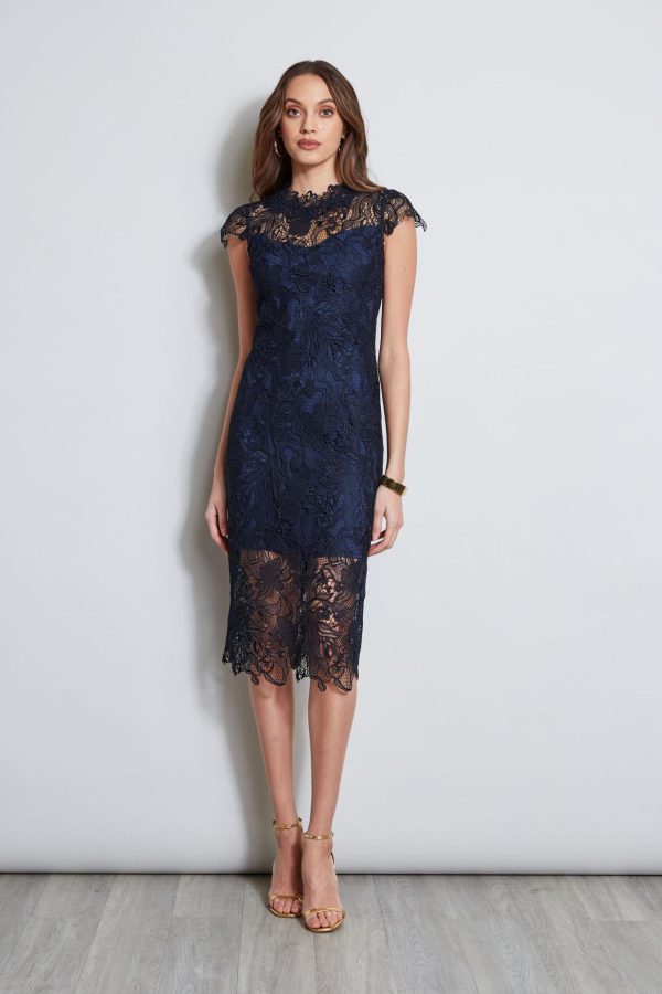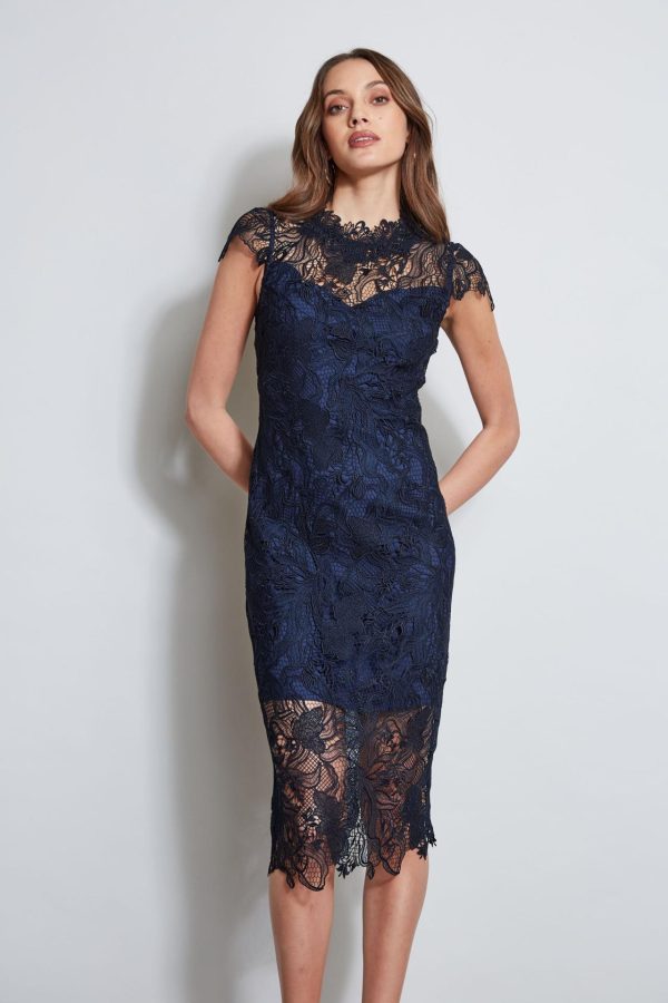 Elie Tahari Lace Applique Midi Dress Stargazer | Online Women Midi Dresses