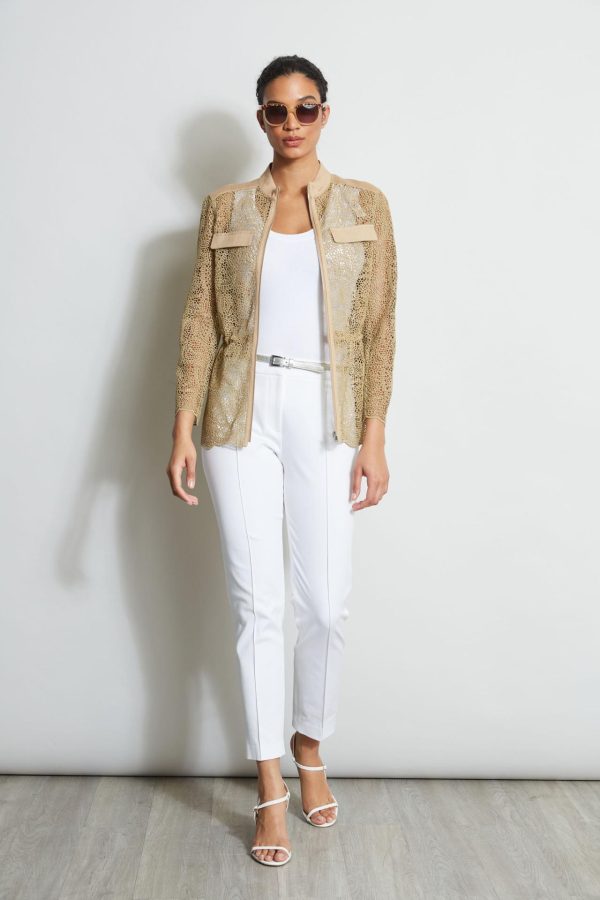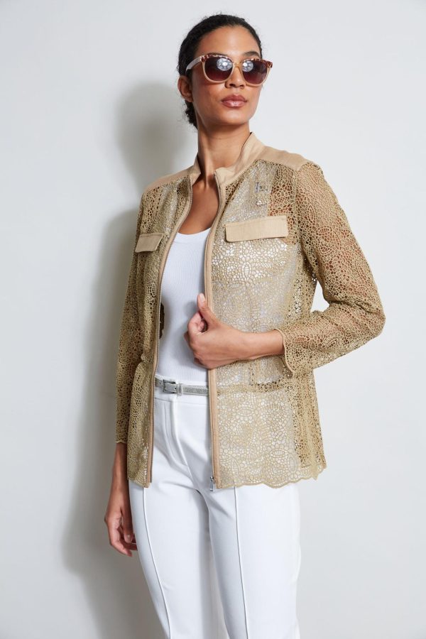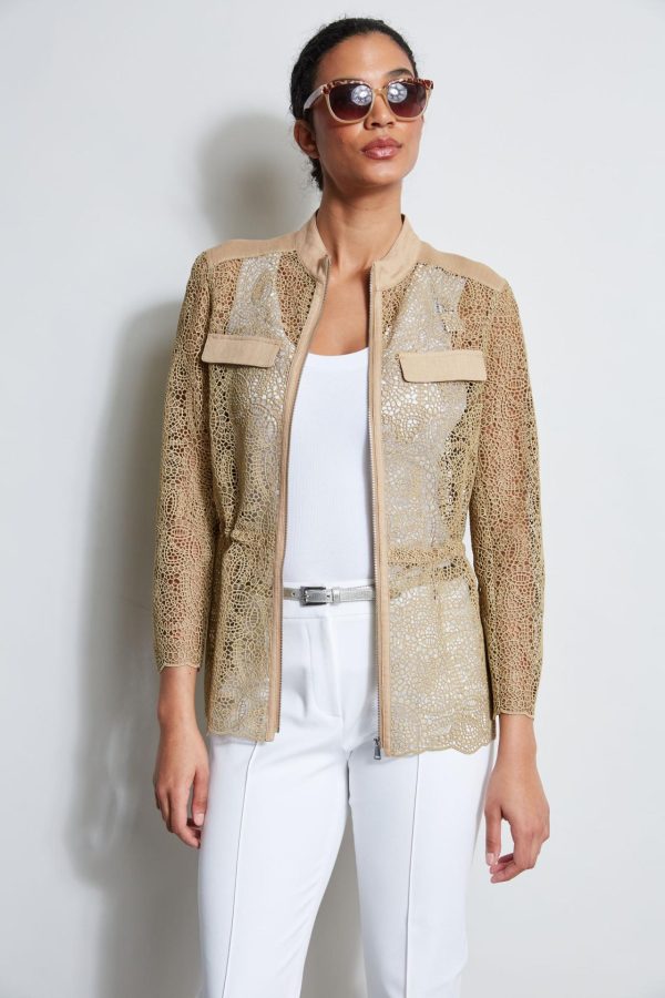 - Openwork Lace Jacket with Linen Details, Drawstring Waist & Zip Front Closure