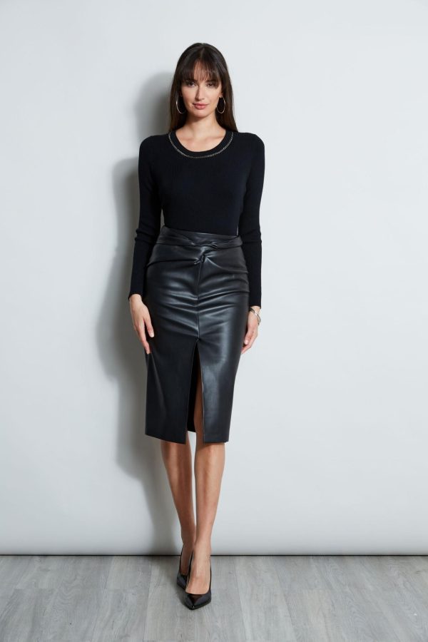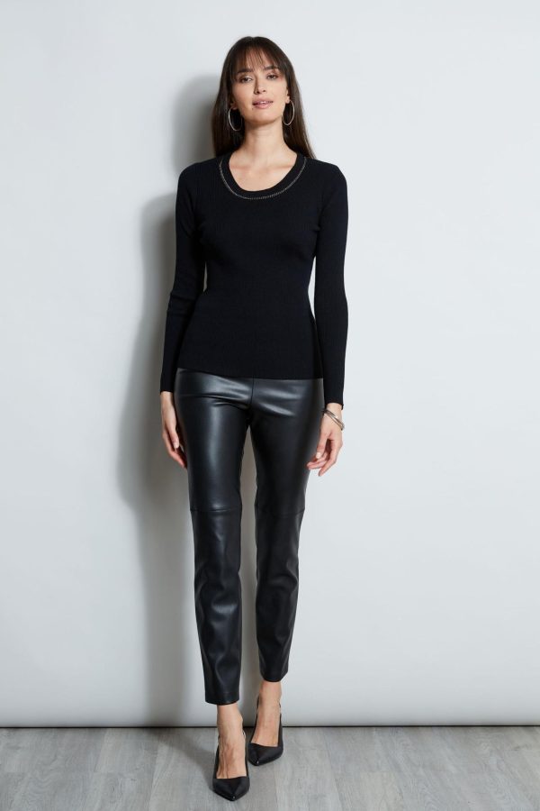 Elie Tahari Merino Rib Chain Detail Sweater Black | Online Women Tops
