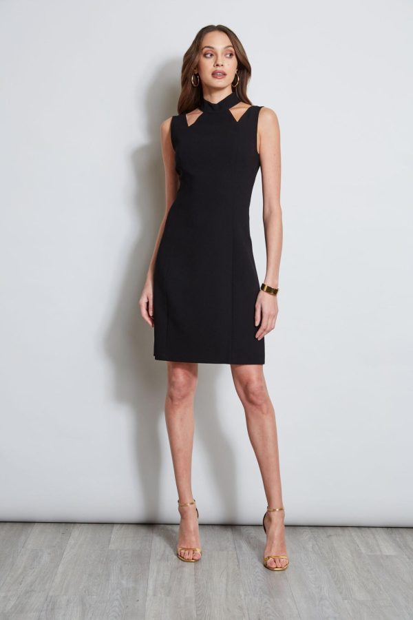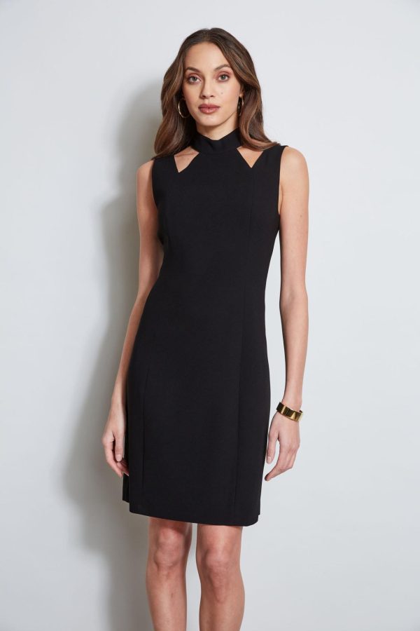 - Sleeveless Fluid Crepe Sheath Dress with Cut Out Detail
