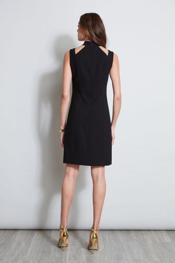 Modern architecture was the inspiration for our sleek Fluid Crepe dress. The neckline cut-outs, mock neck and contour seaming give it a design edge – whether for day or a night out.