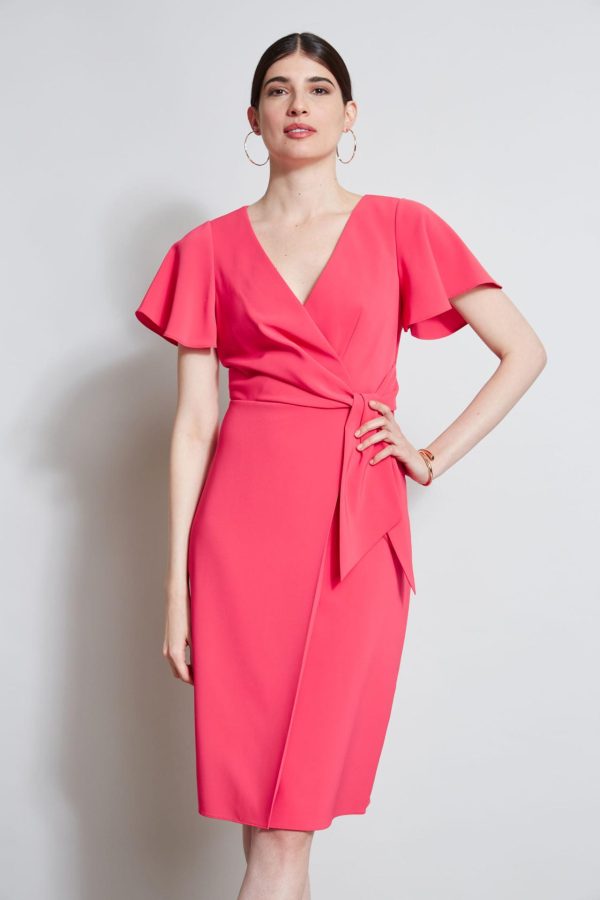 Elie Tahari Mock Wrap Flutter Sleeve Dress Wild Strawberry | Online Women Dresses & Jumpsuits