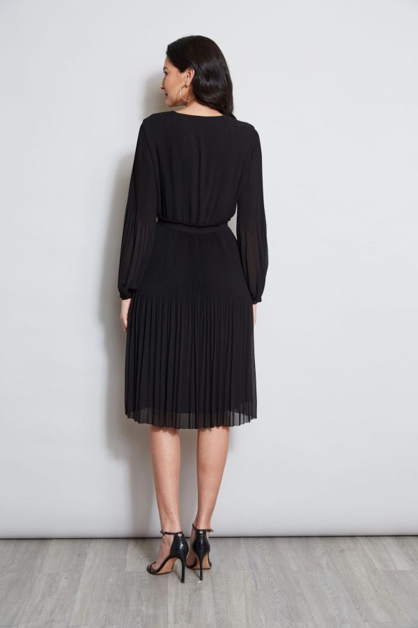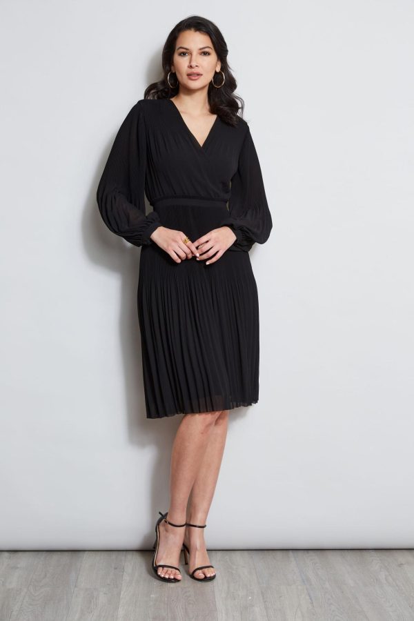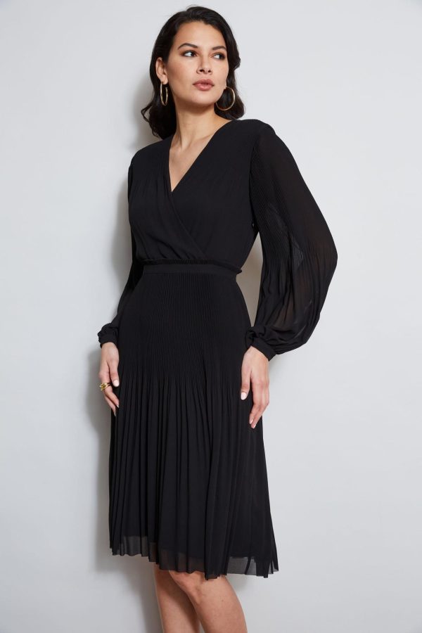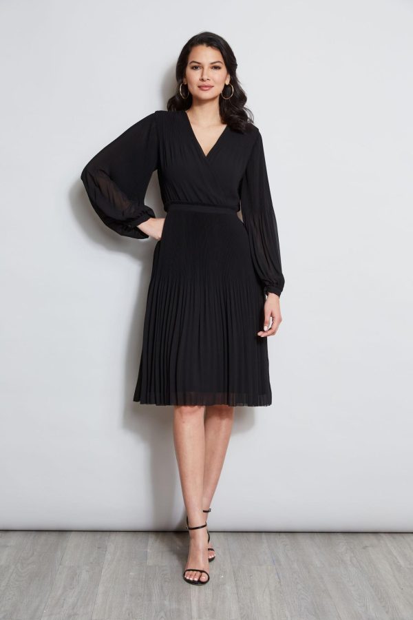 Elie Tahari Mock Wrap Pleated Dress Noir | Online Women Long Sleeve Dresses