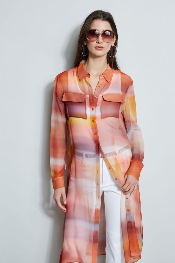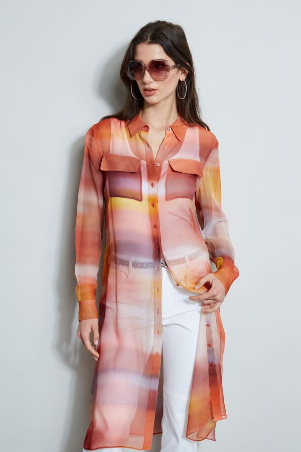 - Ombre Printed Silk Chiffon Button Down Maxi Shirt