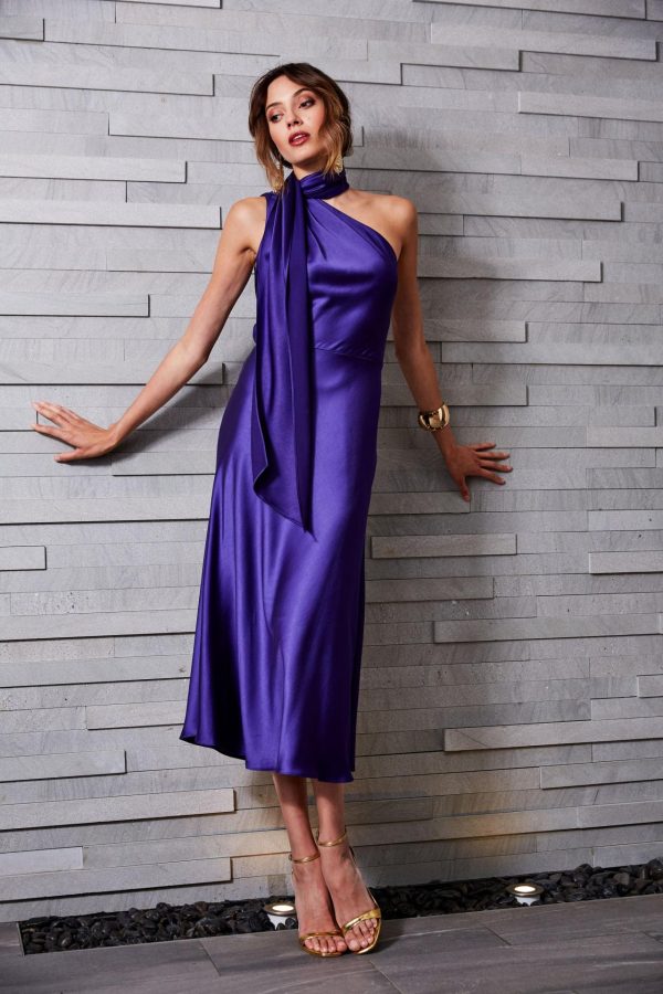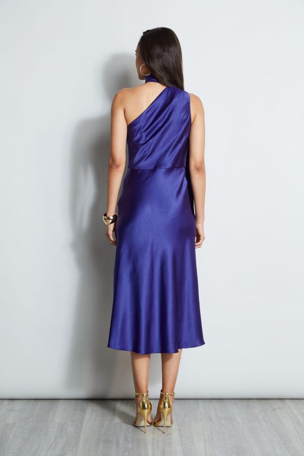 Chic and of the moment, our one shoulder midi dress features a romantic scarf detail that adds the glam factor to our favorite Satin dress. Dress it up with your favorite earrings & strappy sandals.