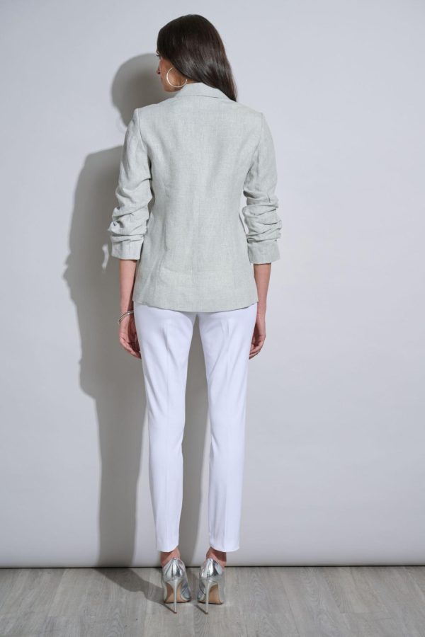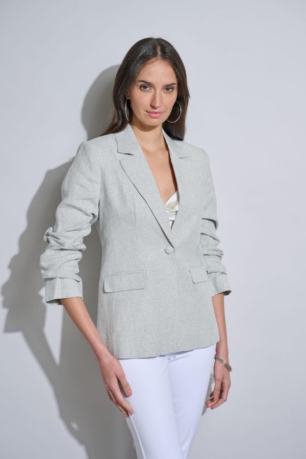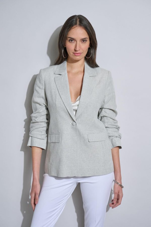 We love the modern proportions of this ruched sleeve Blazer. The relaxed boyfriend fit is perfect for dressing up with crepe or down with denim for an easy casual vibe.