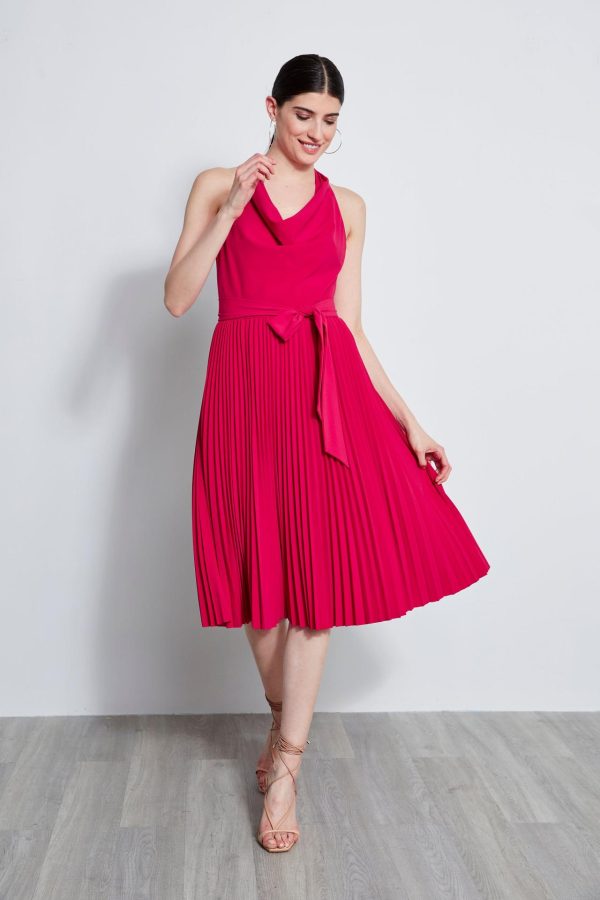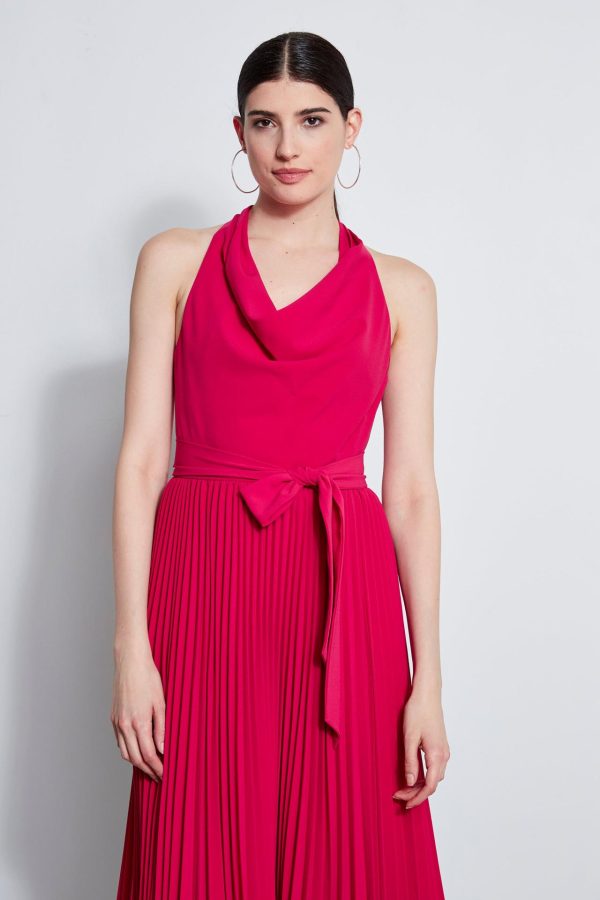Elie Tahari Pleated Cowl Midi Dress Cyclamen | Online Women Short Dresses