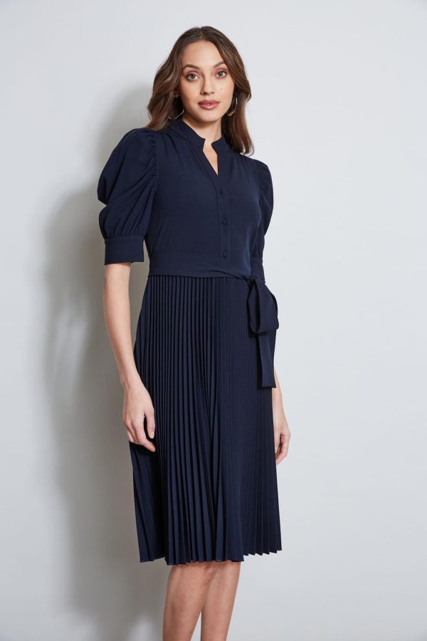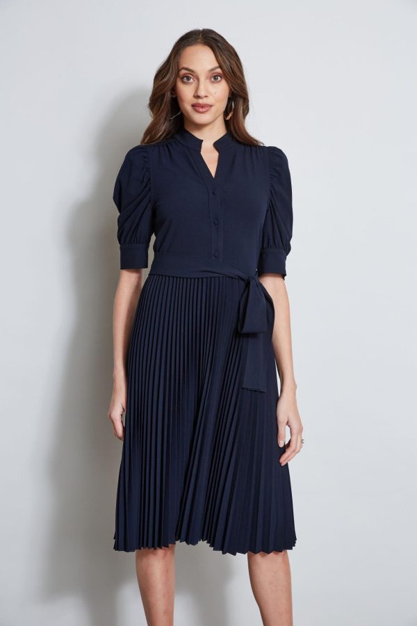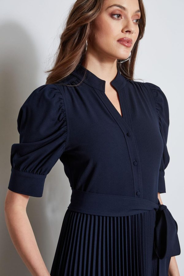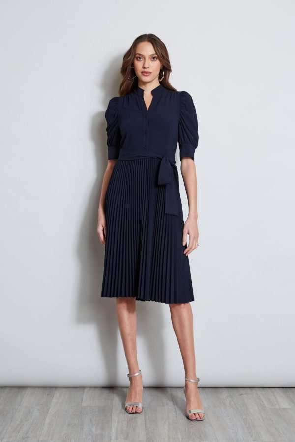 Elie Tahari Pleated Ruched Sleeve Dress Stargazer | Online Women Dresses & Jumpsuits