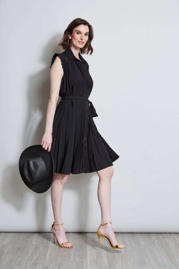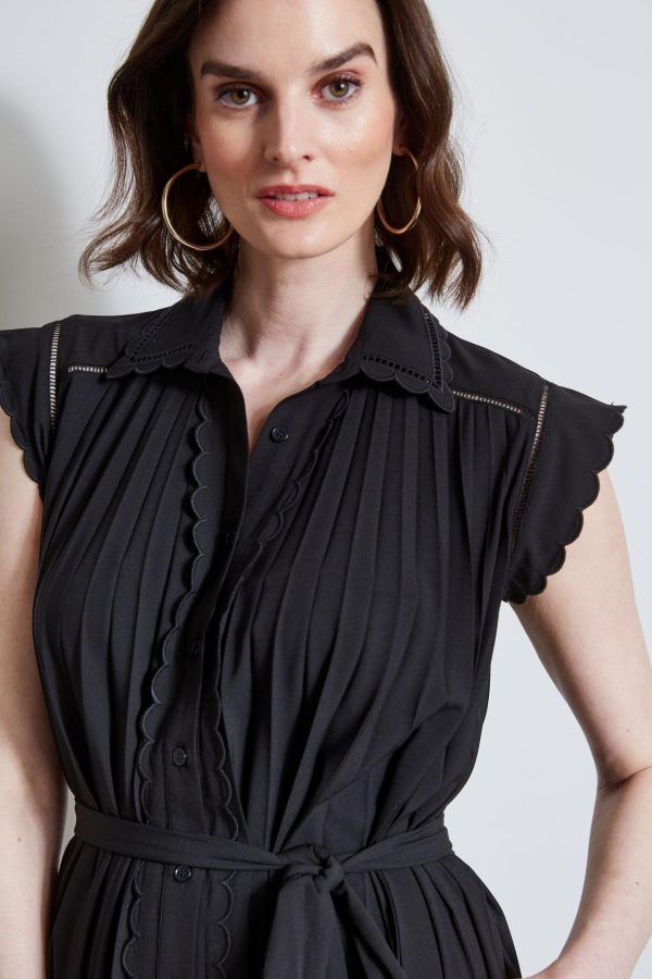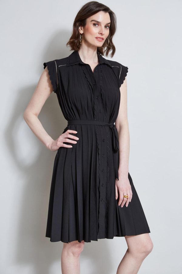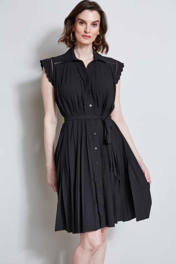 Elie Tahari Pleated Scallop Dress Noir | Online Women Dresses & Jumpsuits