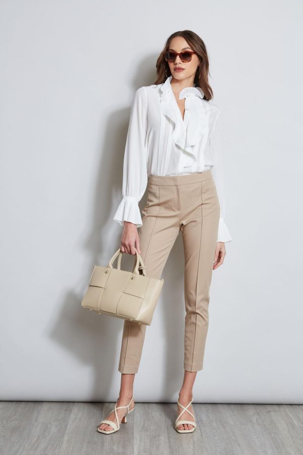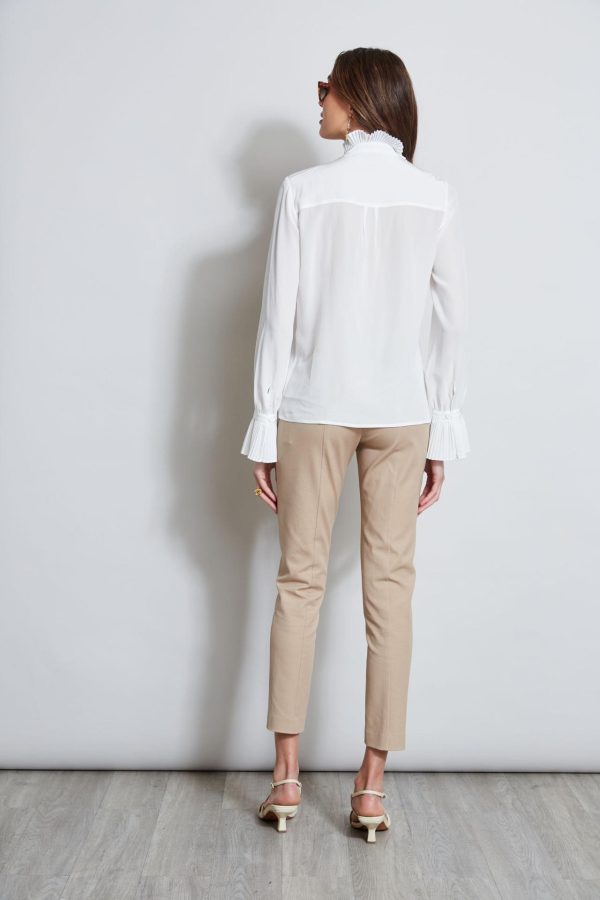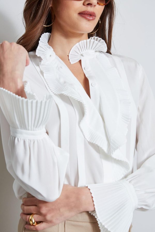 Elie Tahari Pleated Silk Shirt Sky White | Online Women Suiting