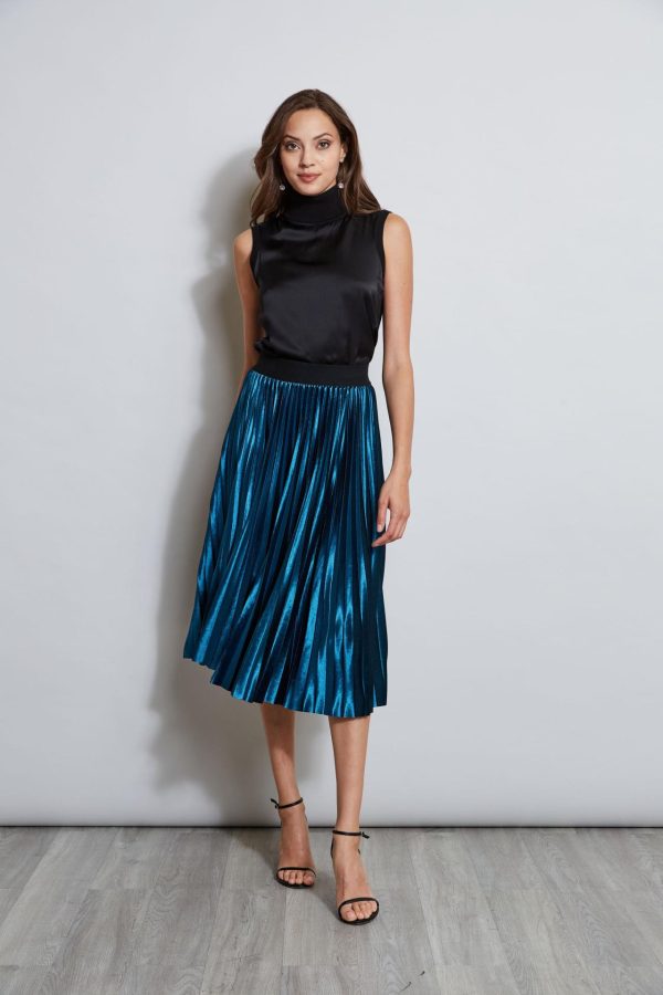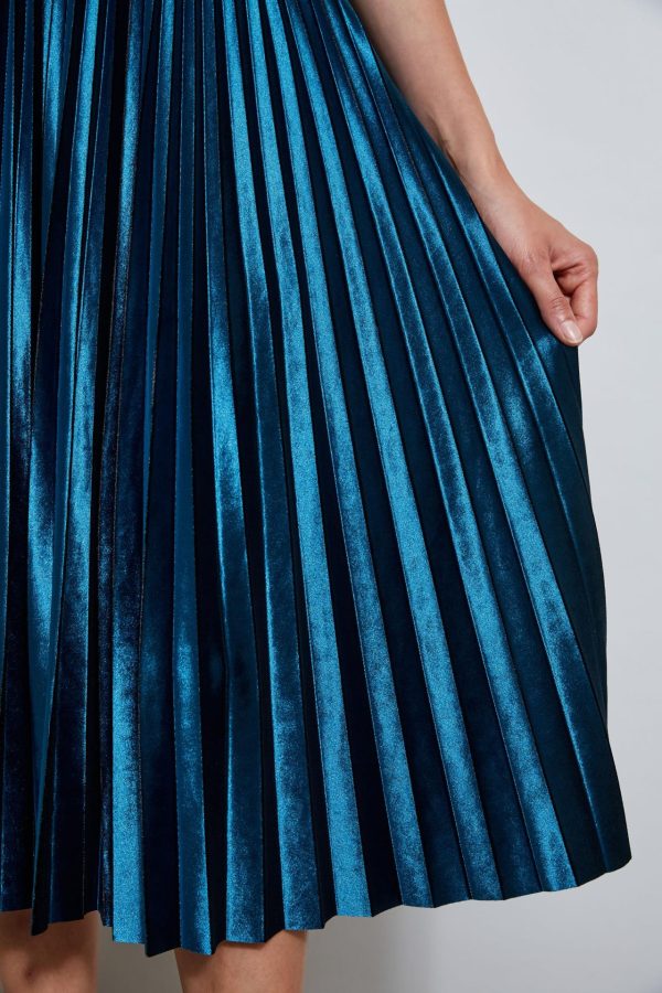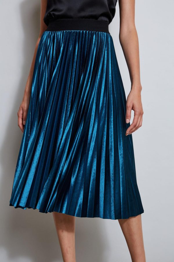 - Velvet Pleated Midi Skirt with Elastic Waist