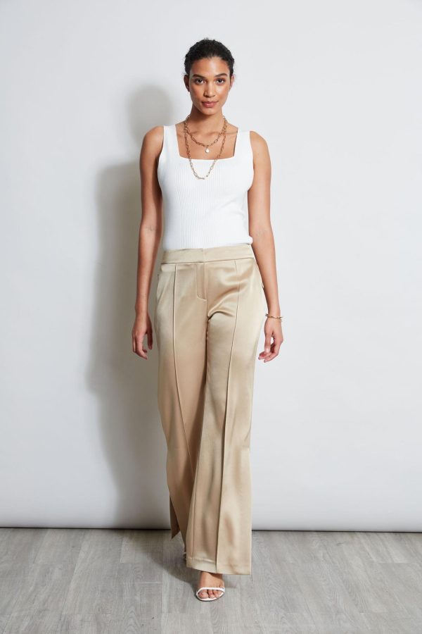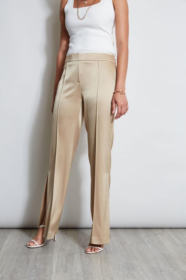 - Satin Fit & Flare Pants with Pintuck Details & Side Slits