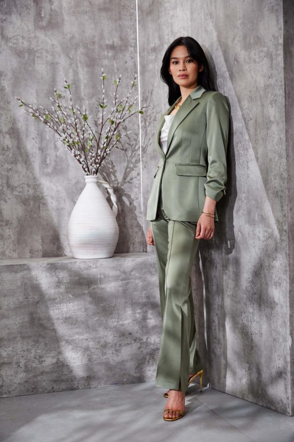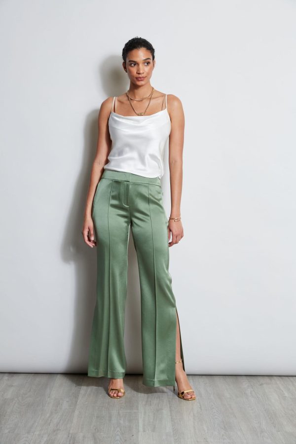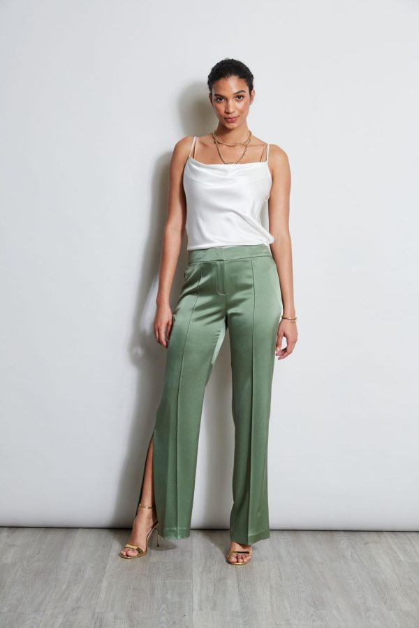 Elie Tahari Satin Side Slit Pant Tuscan Olive | Online Women Bottoms