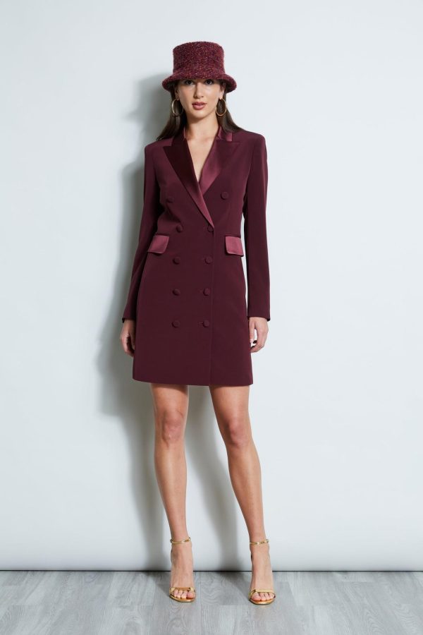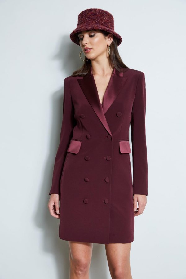 - Satin Back Crepe Blazer Dress with Double Breasted Silhouette