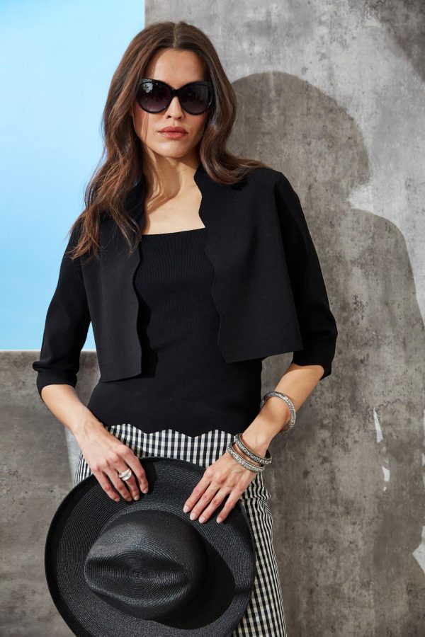 Our cropped Scallop cardigan is the layering piece every closet needs. Chic & timeless, this must-have cardigan features scalloped edges and a three-quarter sleeve. Wear it dressed down with jeans or up layered over your favorite dress.