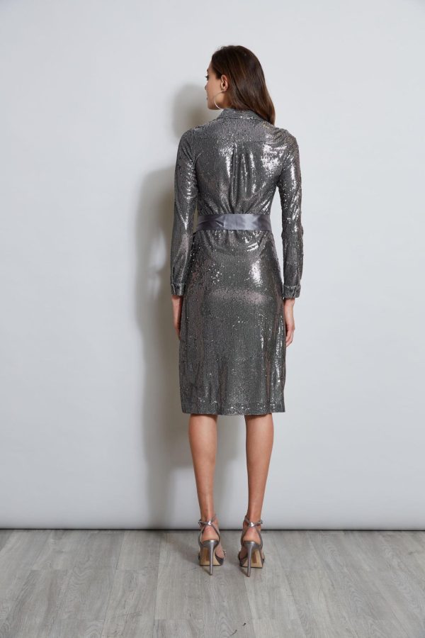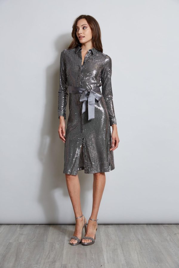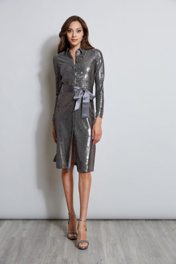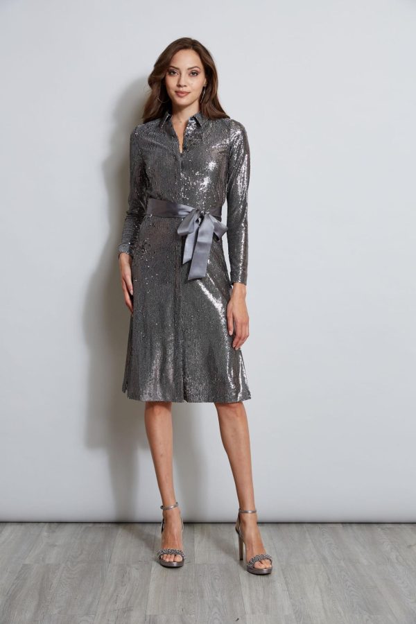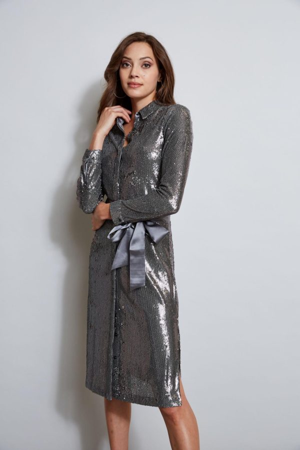 - Pave Sequin Shirt Dress with Silk Satin Sash