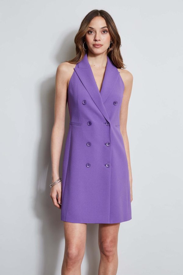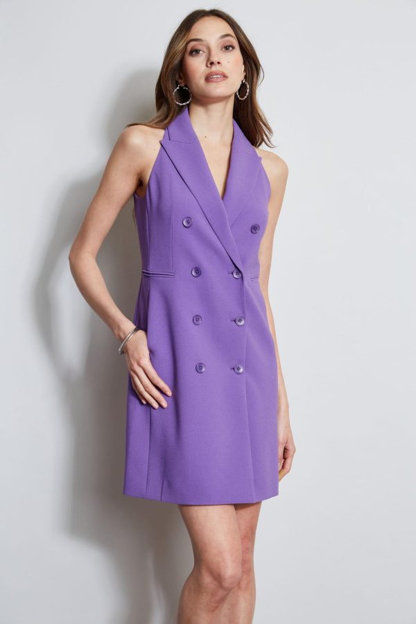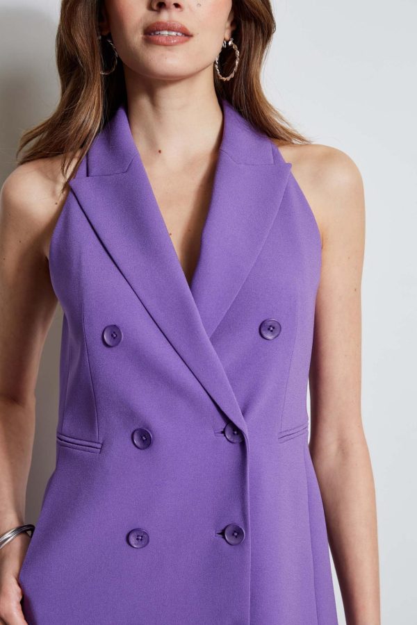 - Fluid Crepe Sleeveless Blazer Dress with a Double-Breasted Silhouette