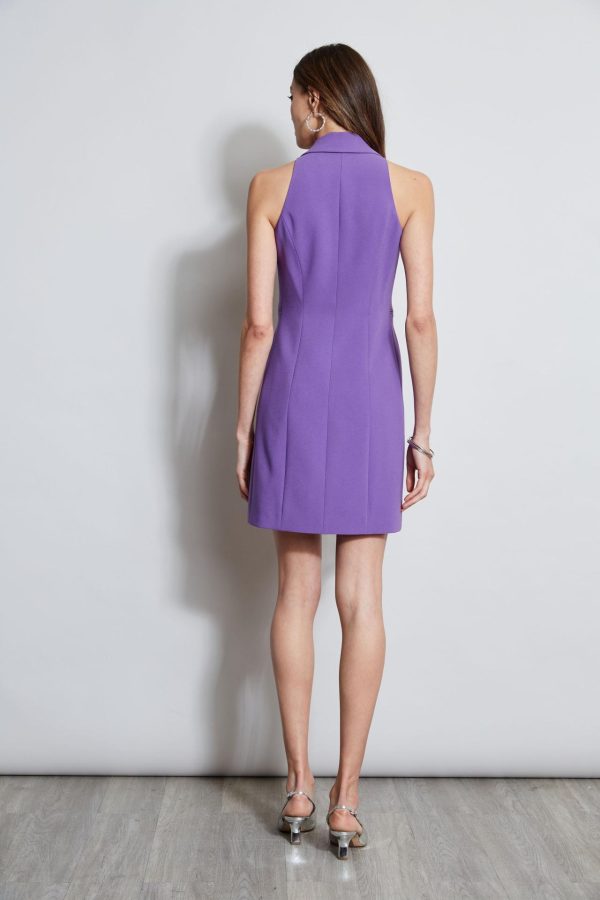 Our Double-Breasted Blazer Dress has a designer vibe with its halter neckline. In luxe Fluid Crepe, it features peak lapels & welt pockets. This ultra-versatile piece can be worn day to night, to work or a special occasion – it is a Spring must-have.