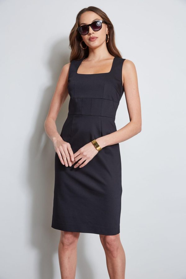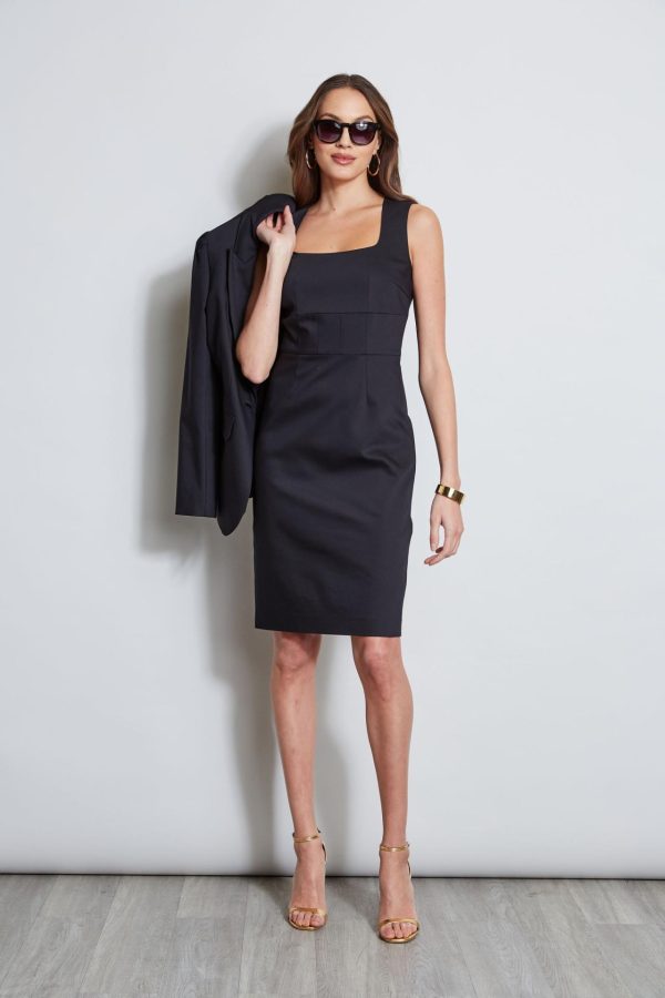 Our Square Neck Dress is a sophisticated take on the must have sheath dress. Flattering & decidedly cool, its chic minimalist lines are detailed with a zig zag embroidery.