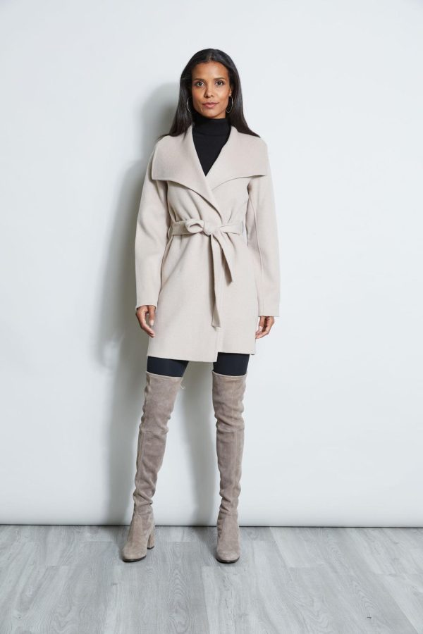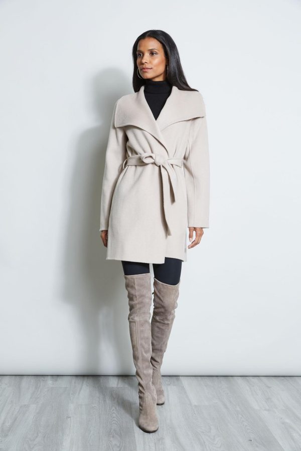 - Tahari Double Face Lightweight Wool Blend Wrap Coat