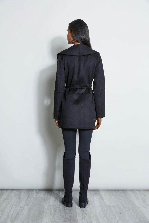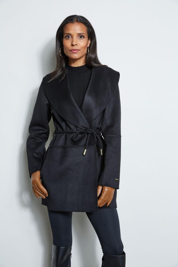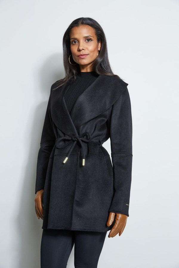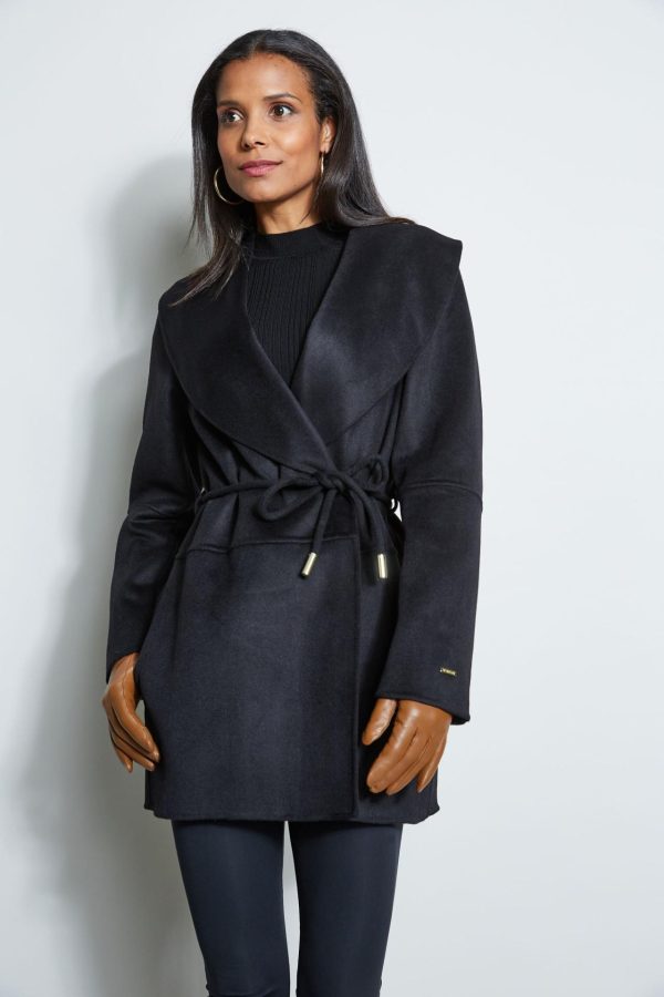 - Tahari Mid-Length Wool Blend Coat with Self Rope Belt & Shawl Collar