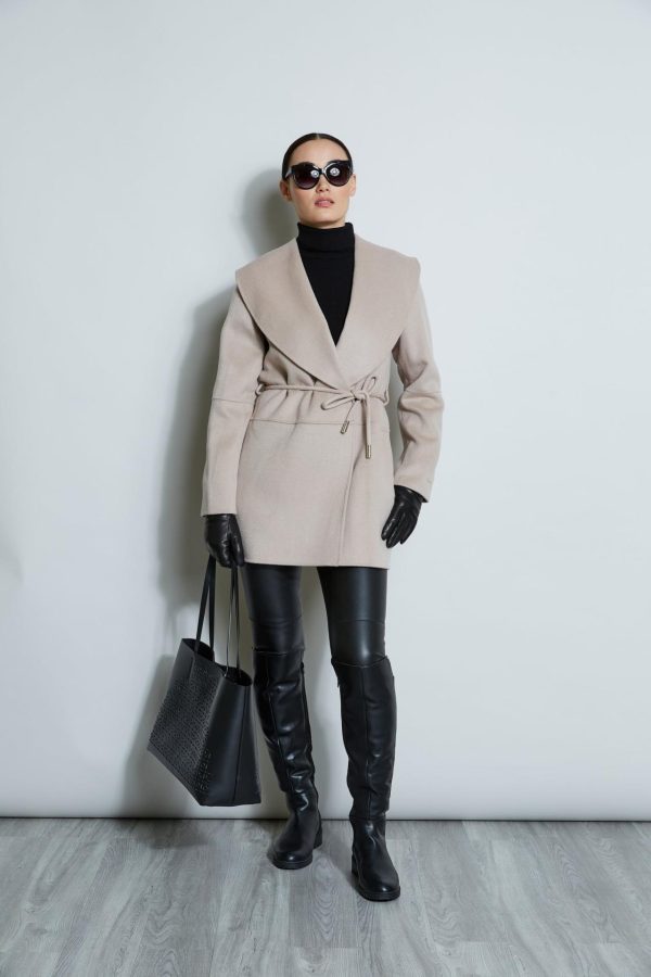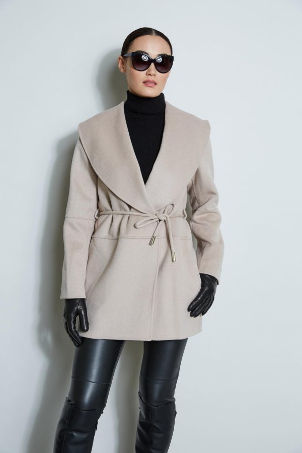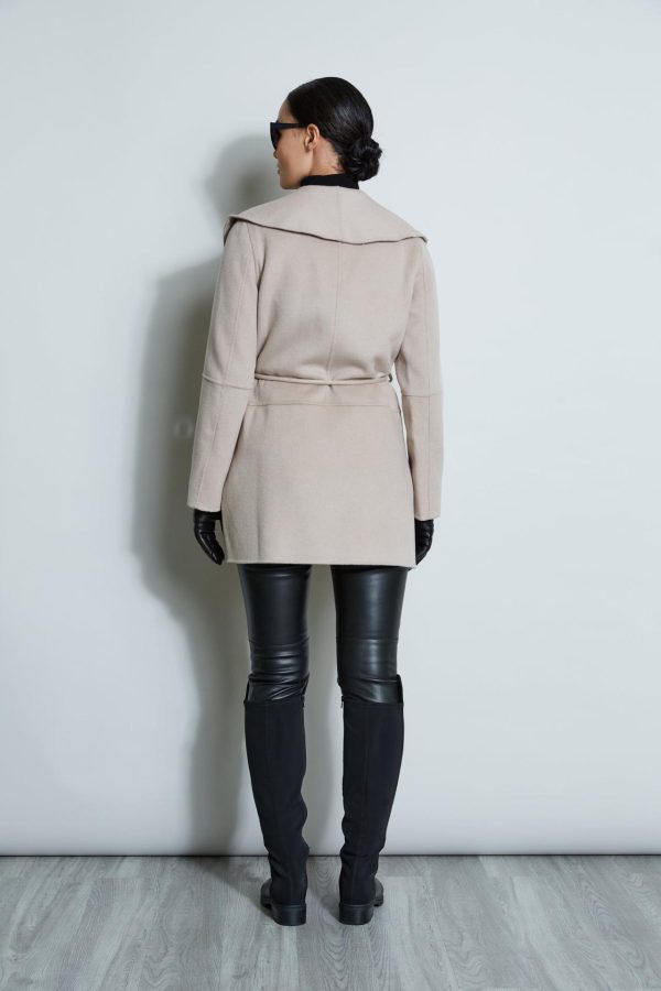 Elie Tahari Tahari Double Face Wool Blend Belted Wrap Coat Soft Almond | Online Women Coats