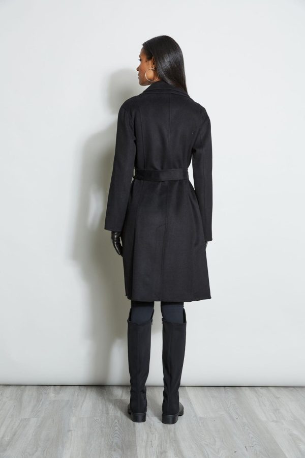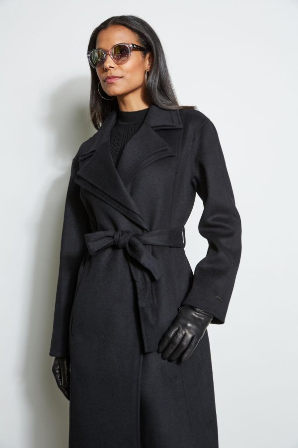 Elie Tahari Tahari Double Face Wool Blend Collar Wrap Coat Black | Online Women Coats