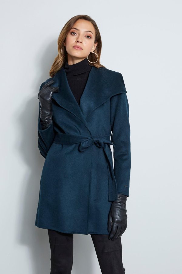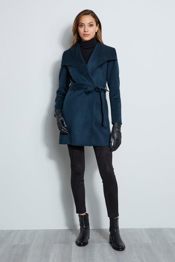 Layer up in our cozy chic Tahari wrap coat. This Wool blend unlined transitional piece features a dramatic lapel, self sash & side seam pockets. You will wear this all season long. Layer it over everything from chic dresses to falls must have Cashmere sweaters.
