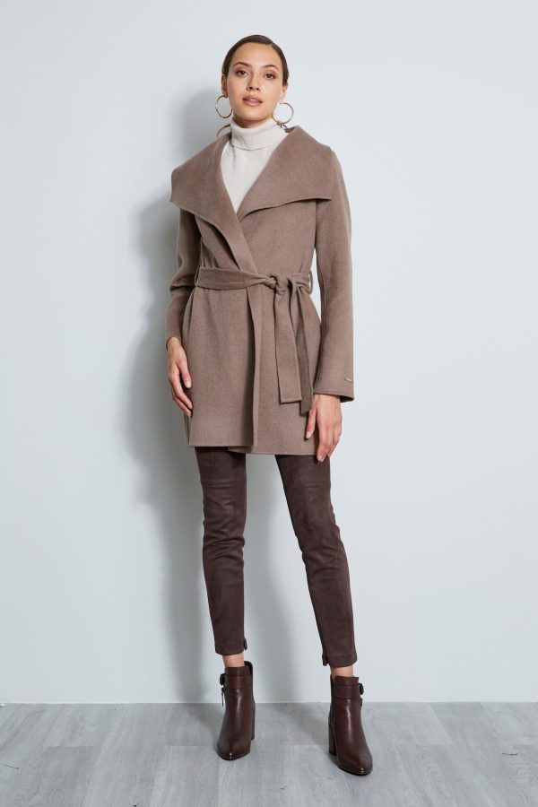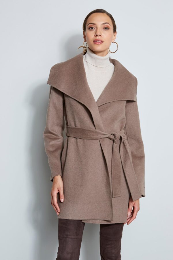 - Tahari Double Face Lightweight Wool Blend Wrap Coat