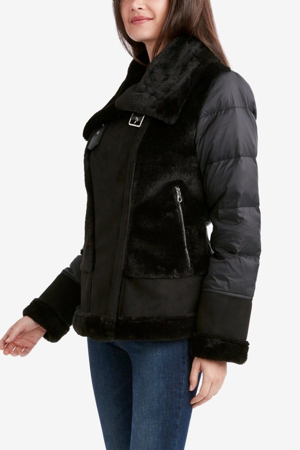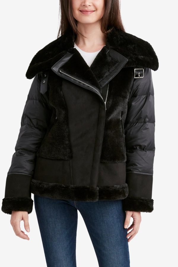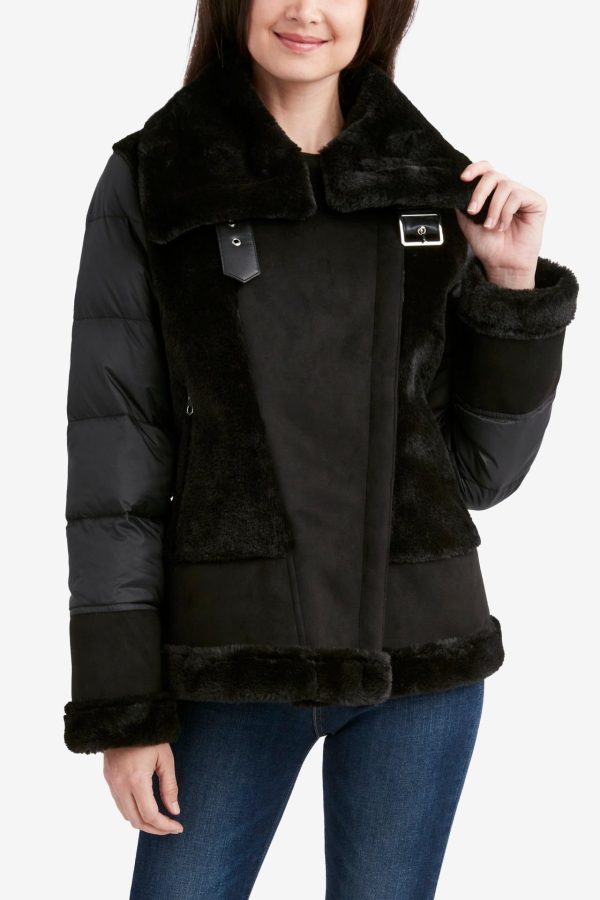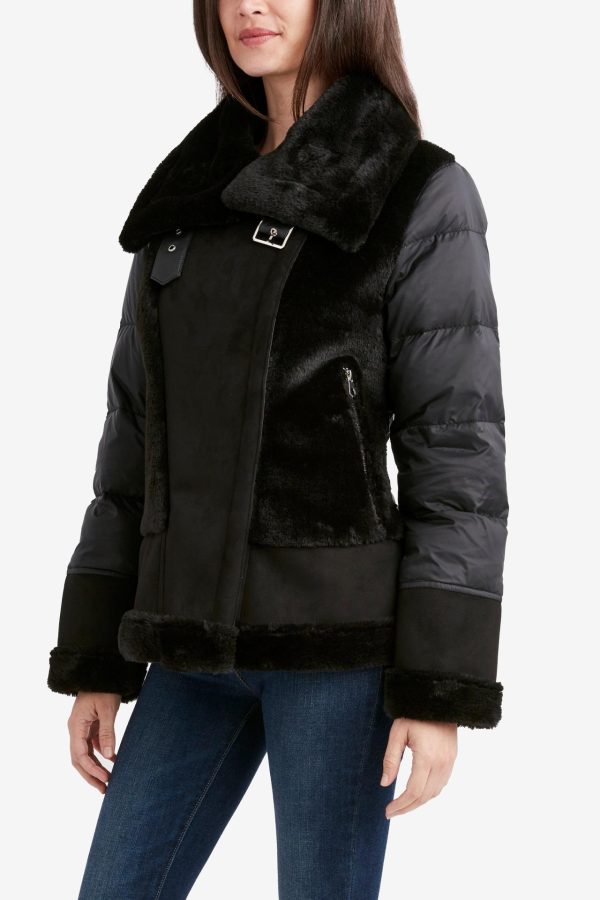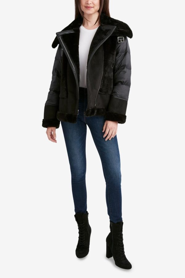 - Tahari Mixed Media Faux Sherling Puffer Coat