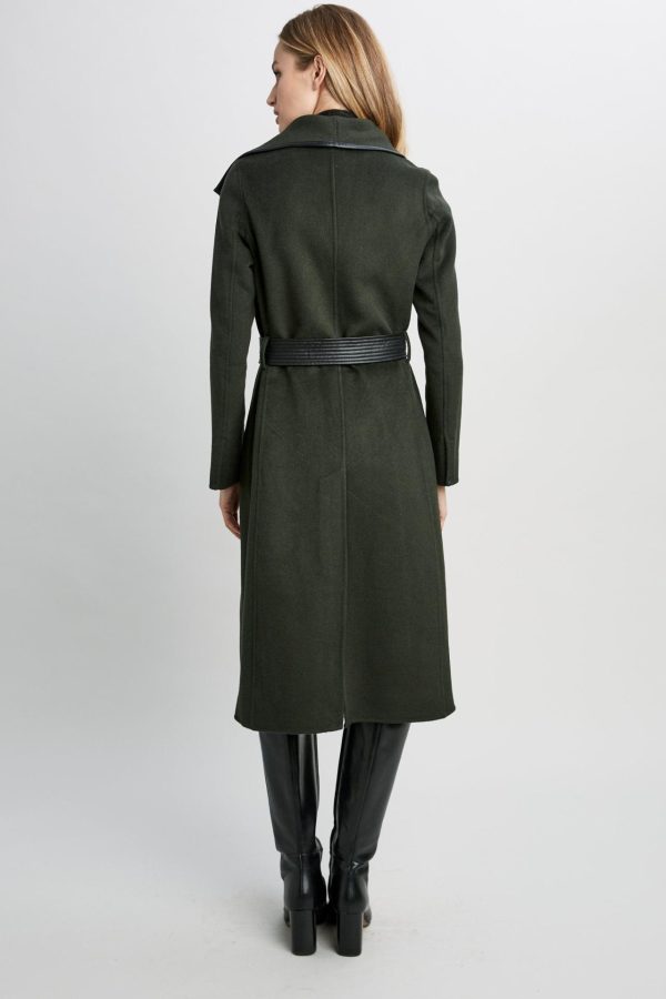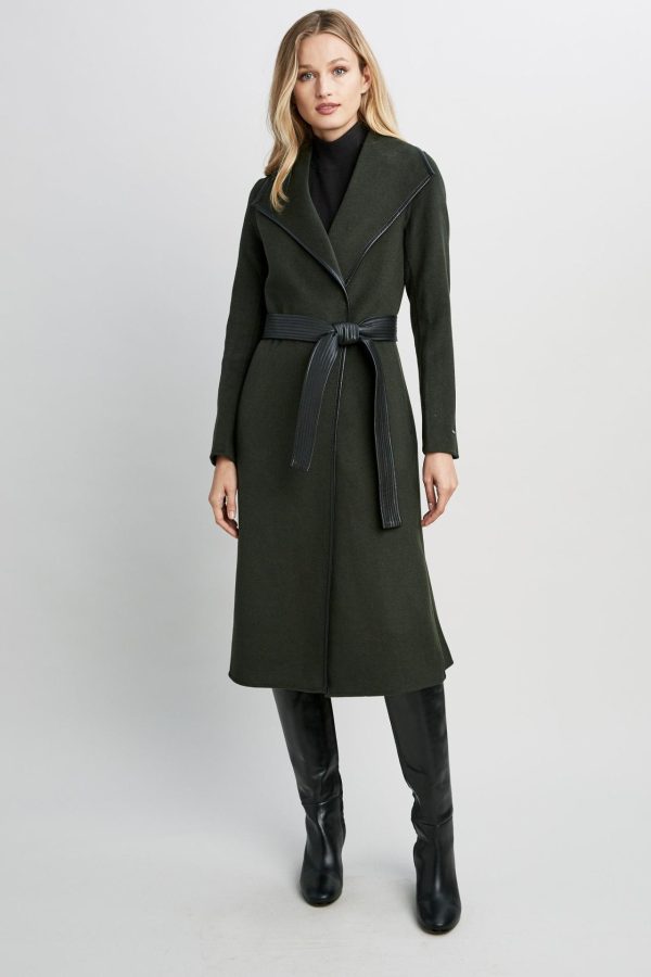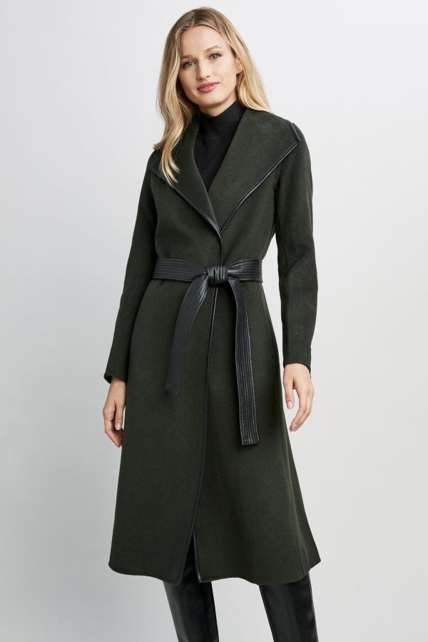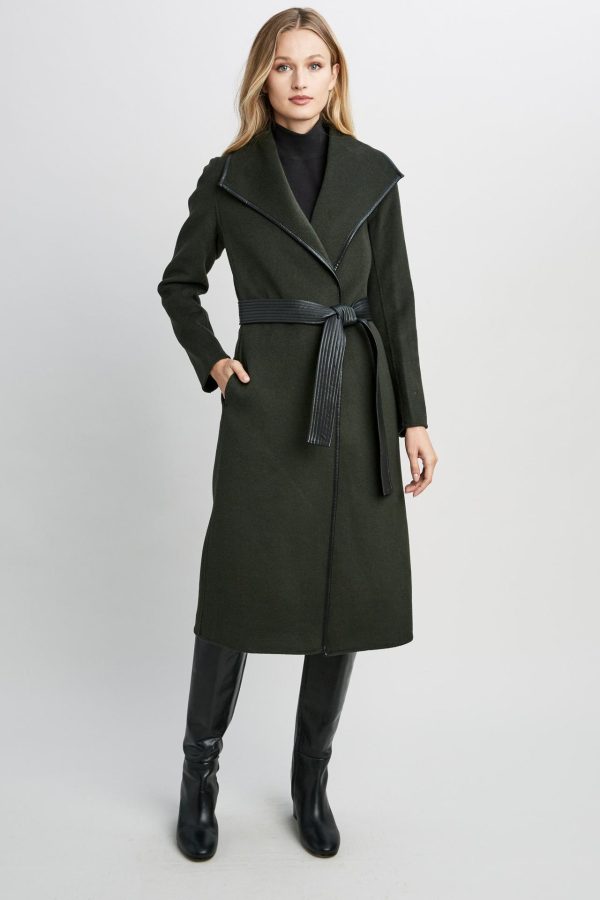 - Wool Wrap Coat with Faux Leather Trim & Sash
