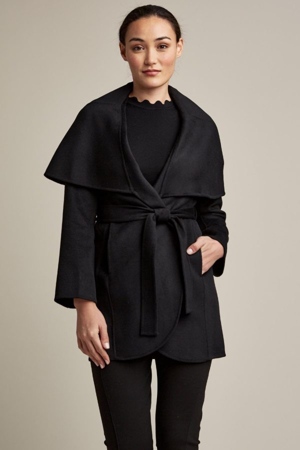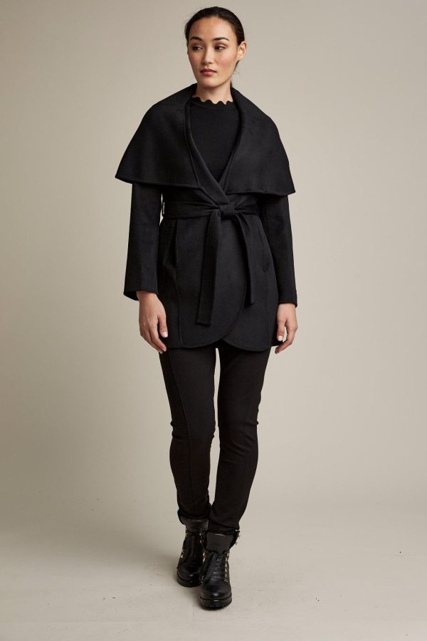 The Tahari Marilyn Coat is the perfect layering piece for those chilly days. This chic, wool-blend coat features a wide shawl collar and a self tie that compliments every figure. You ‘ll love this cold-weather wardrobe essential.