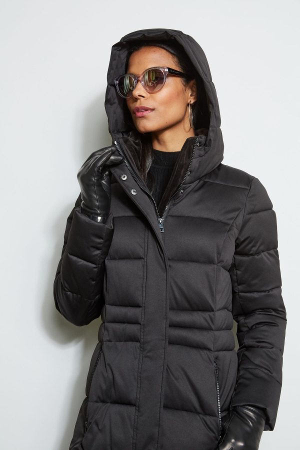Elie Tahari Tahari Stitched Hooded Puffer Coat Black | Online Women Coats
