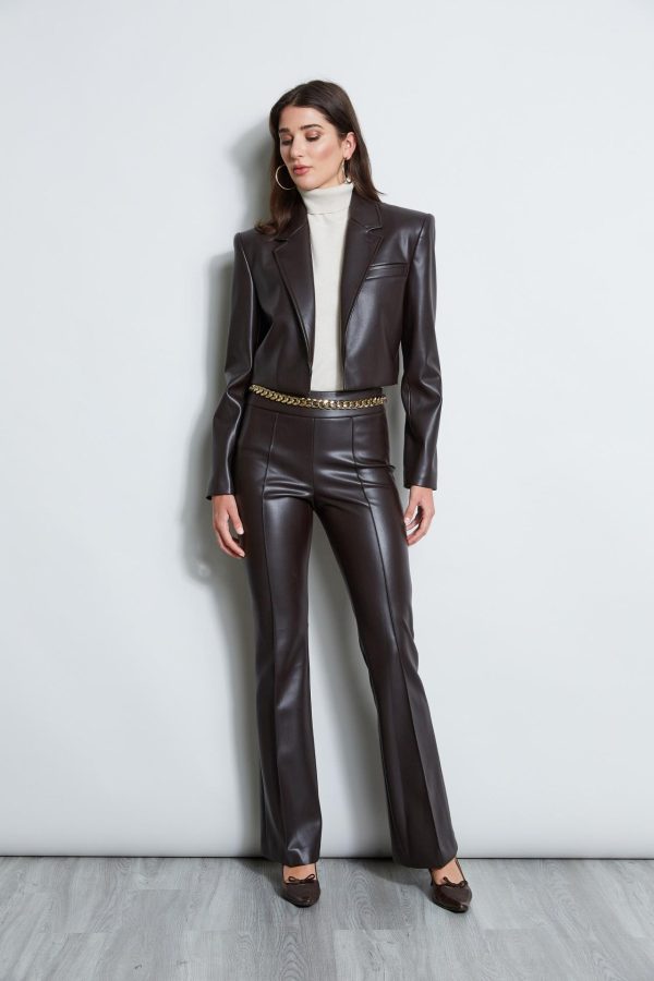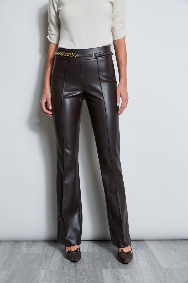 - Vegan Leather Straight Leg Pants with Pintuck detail