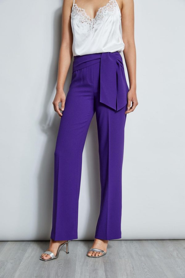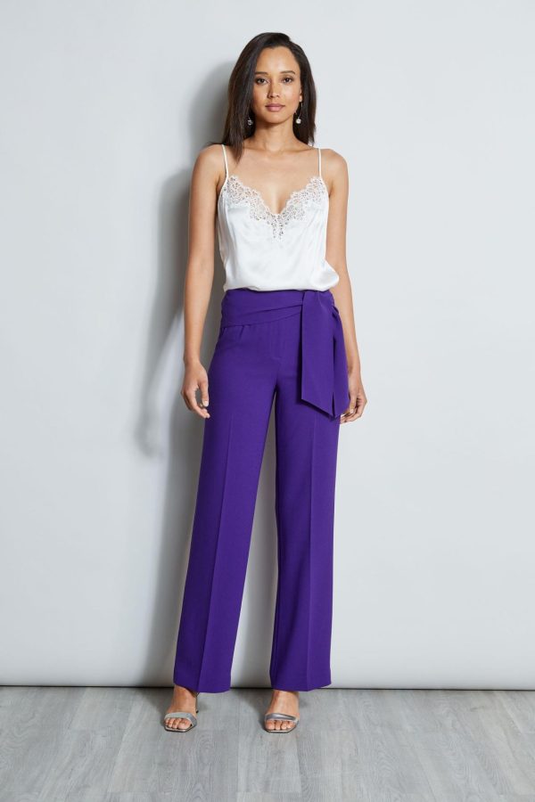 Elie Tahari Wide Leg Sash Pant Plum | Online Women Bottoms