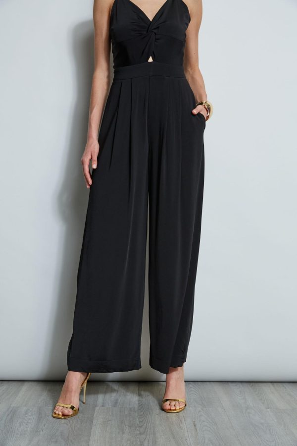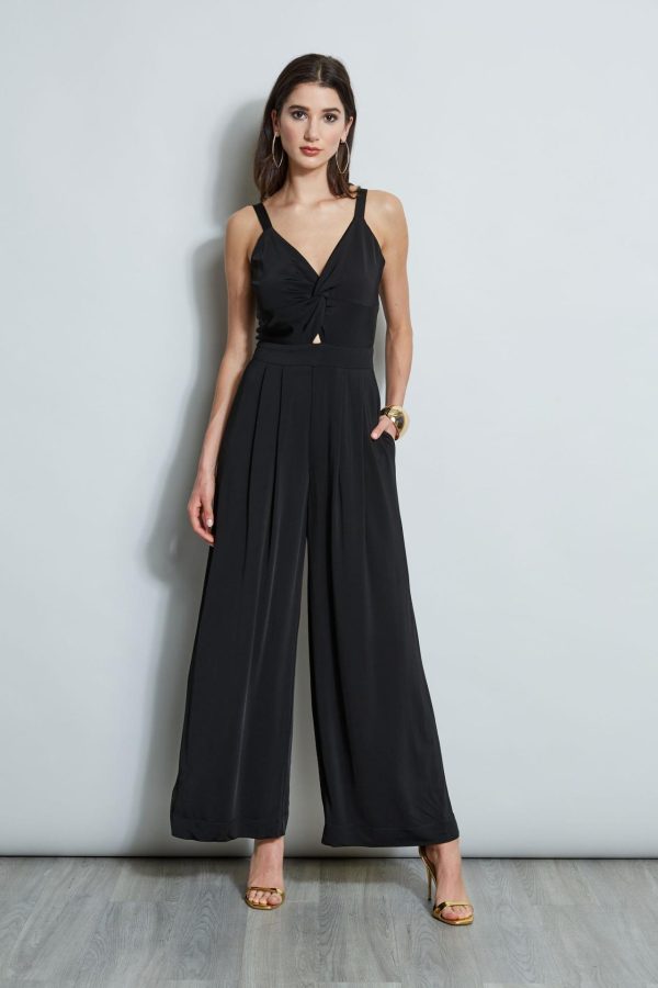 - Luxe Viscose Wide-Leg, Twist Neckline Sleeveless Jumpsuit with Cut Out detail